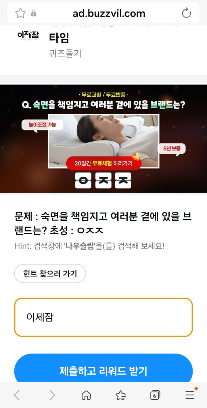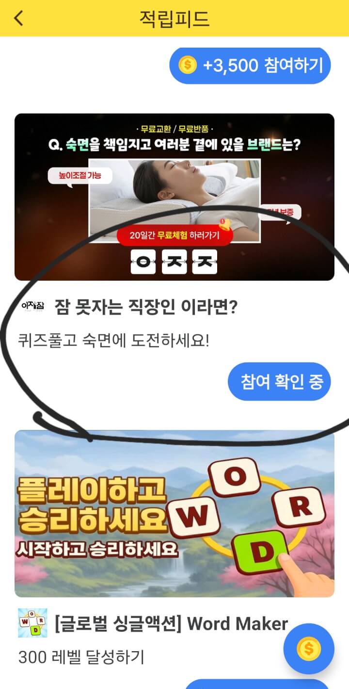 적립피드에 8점 초성퀴즈 적립 있어요. 답: 이제잠~~