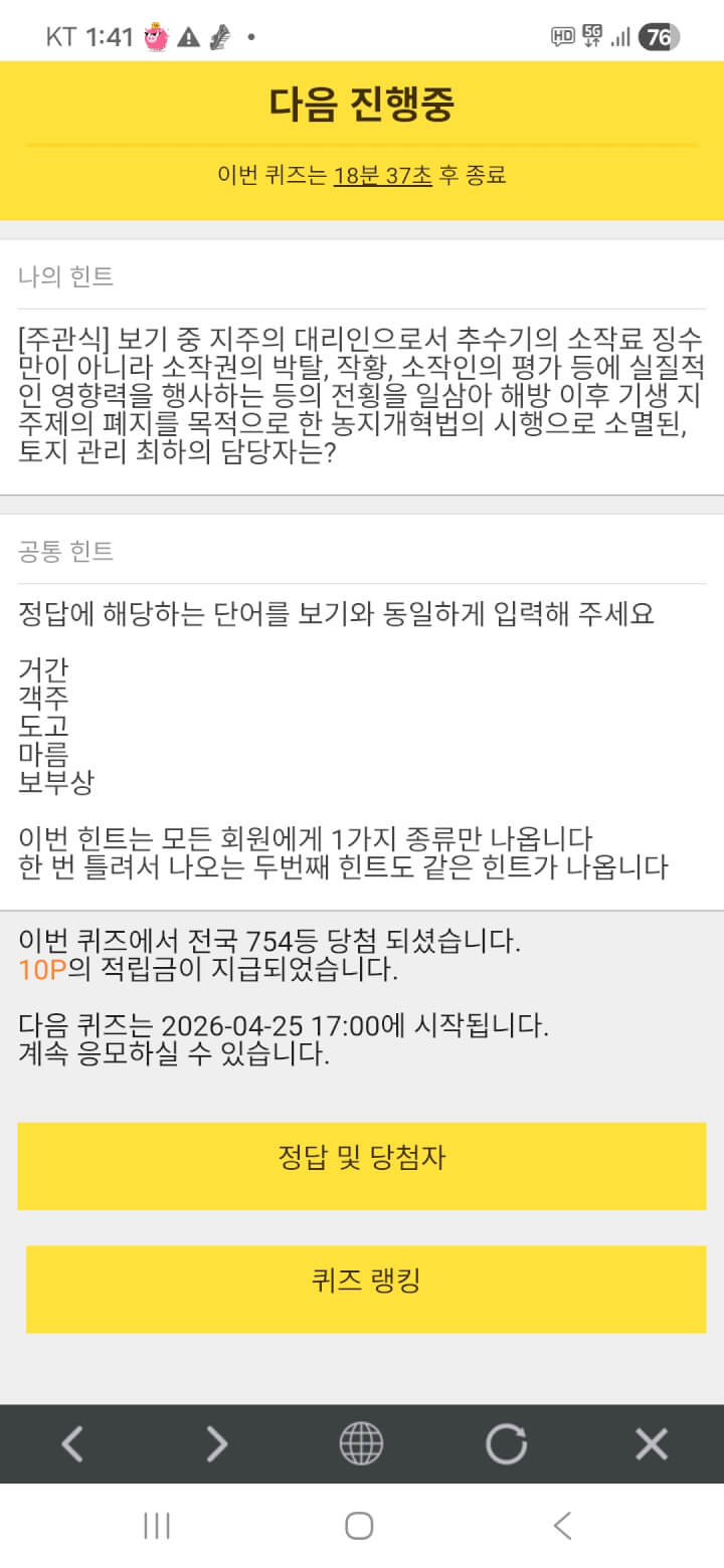 퀴즈 10원 받았어요