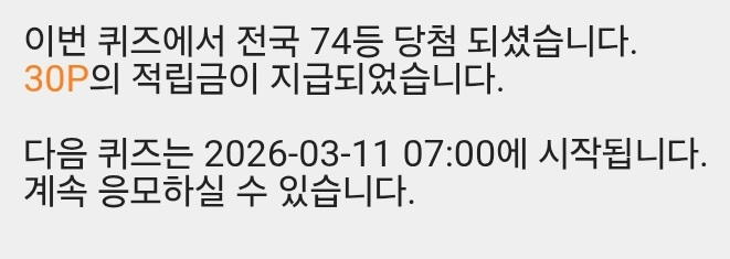 10시퀴즈 30원 받았습니다