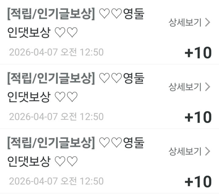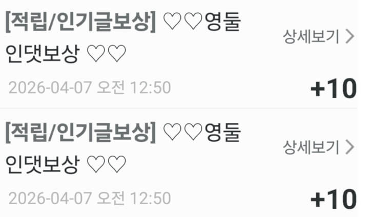 어제받은 인기글보상 5개 감사합니다 ☘️