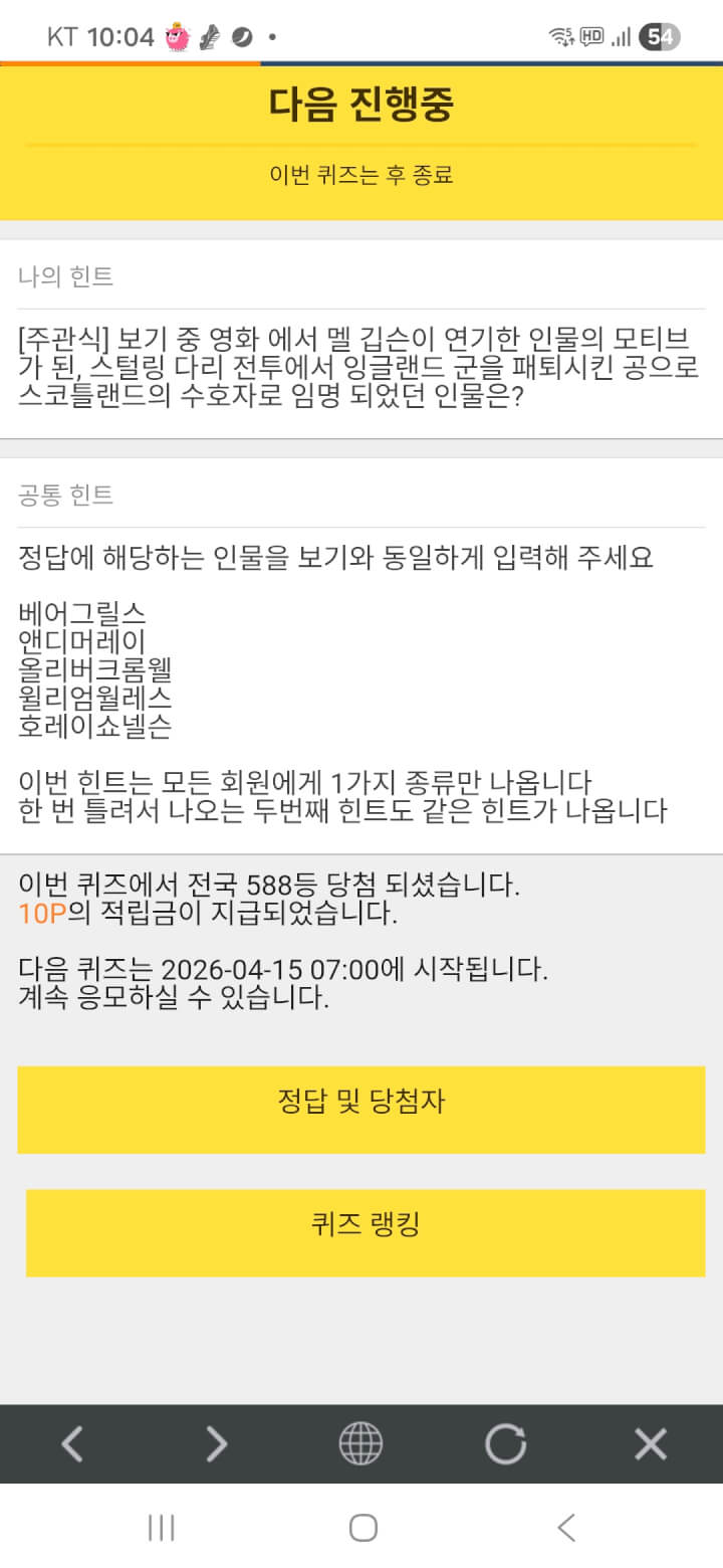 퀴즈 10원 받았어요