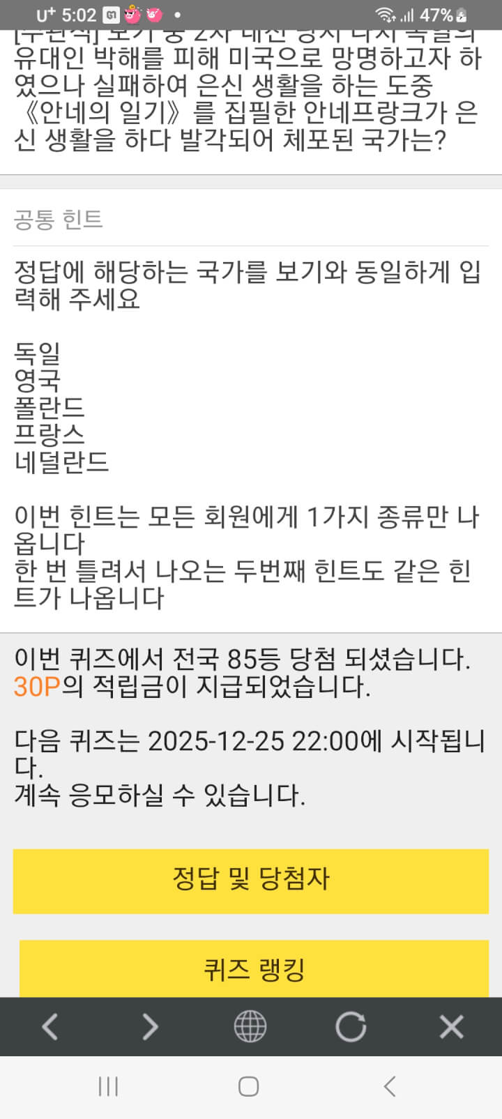 퀴즈 30원 받았어요 감사합니다 즐거운 오후 되시고 맛점하세요