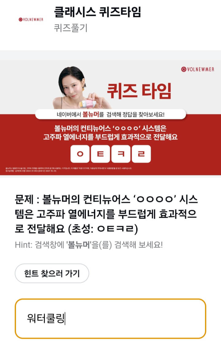 광고보고 8점 초성퀴즈 적립받으세요 워터쿨링 입니다