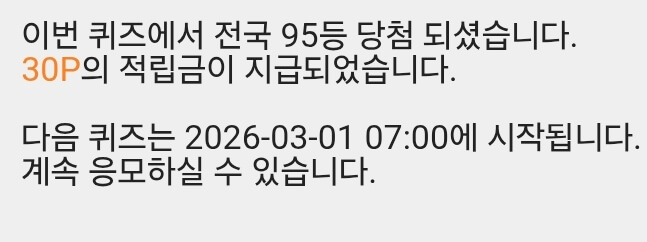 10시퀴즈 30원 받았습니다