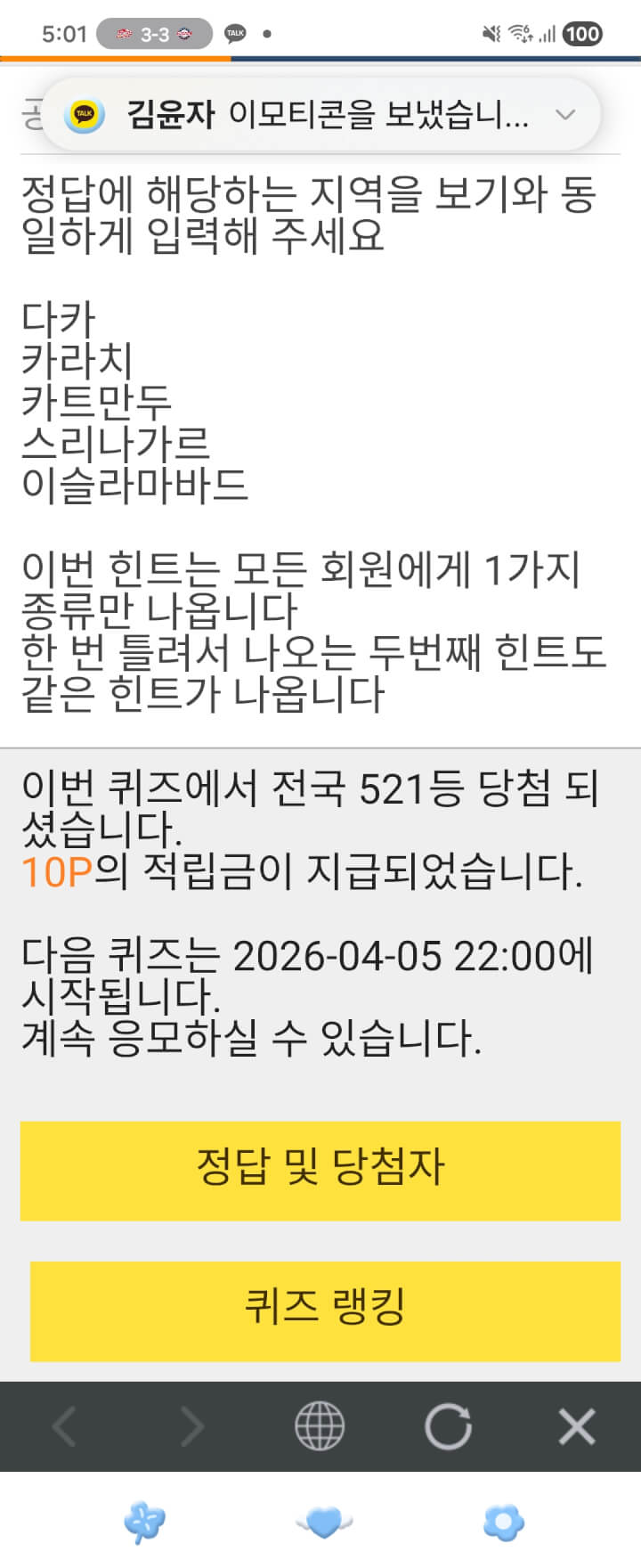 5시퀴즈 10원받고 늦은밤 푸시글 올립니다 감사합니다 ☘️☘️