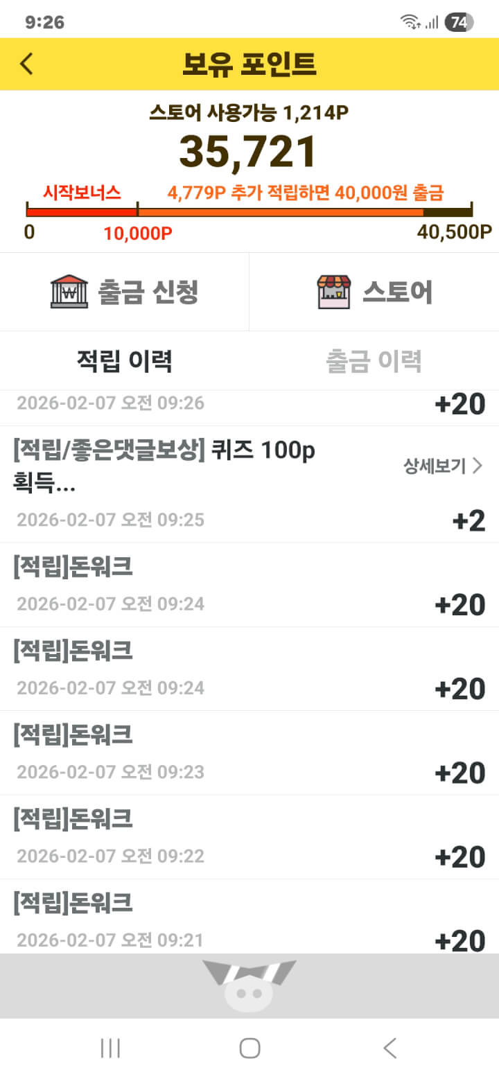 돈워크 120p 획득 적립을 하였습니다. 감사합니다.