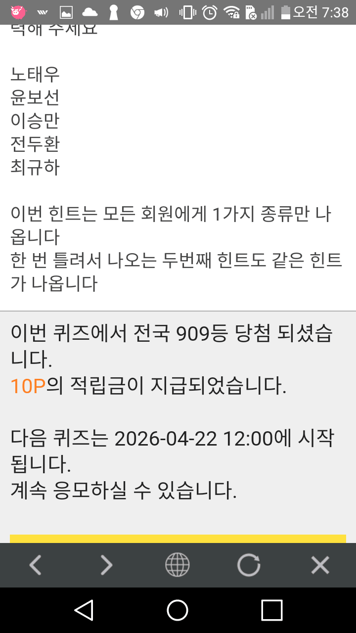 7시 퀴즈10점 받았어요 ♥♥