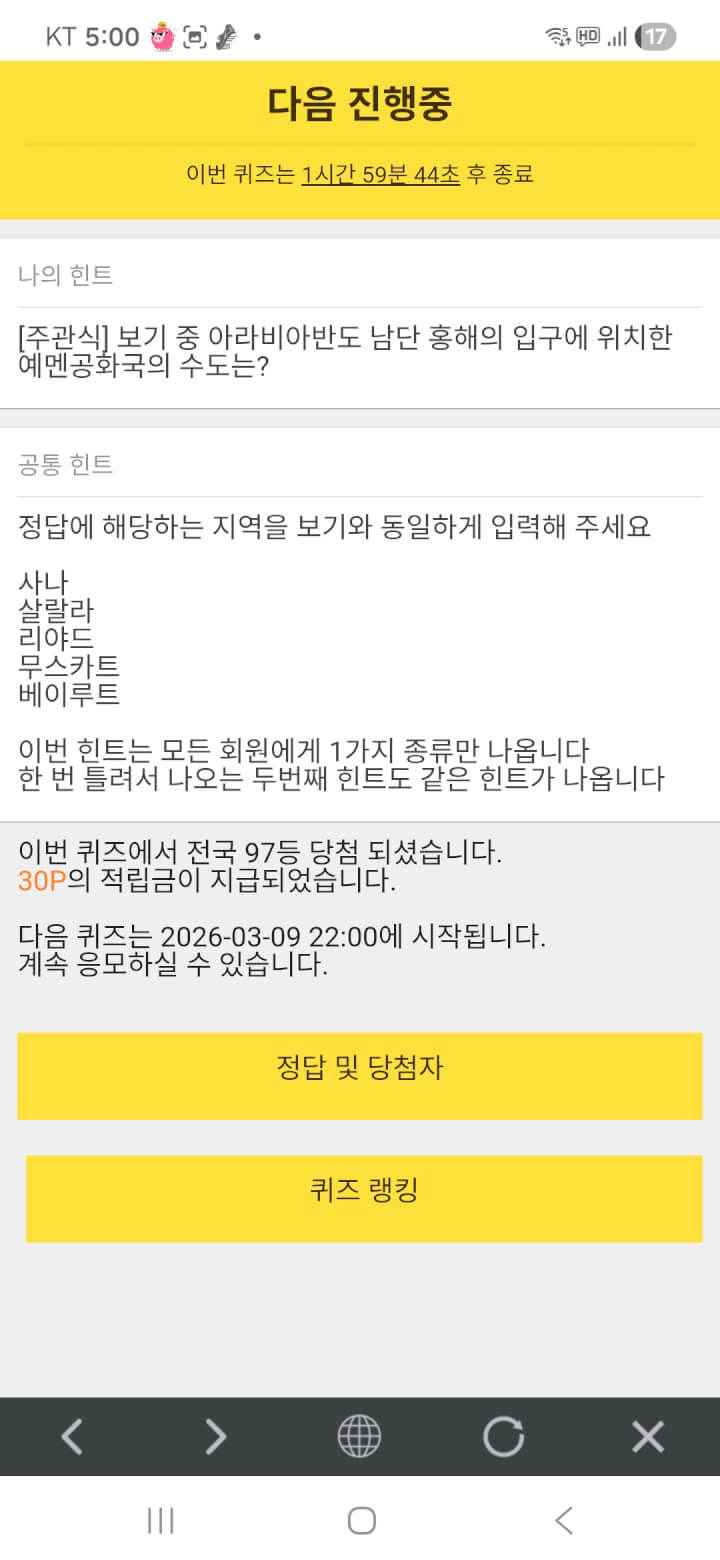 퀴즈 30원 받았어요