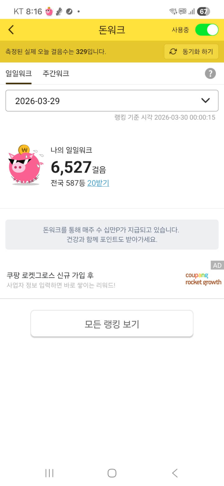 돈워크 적립 받았어요