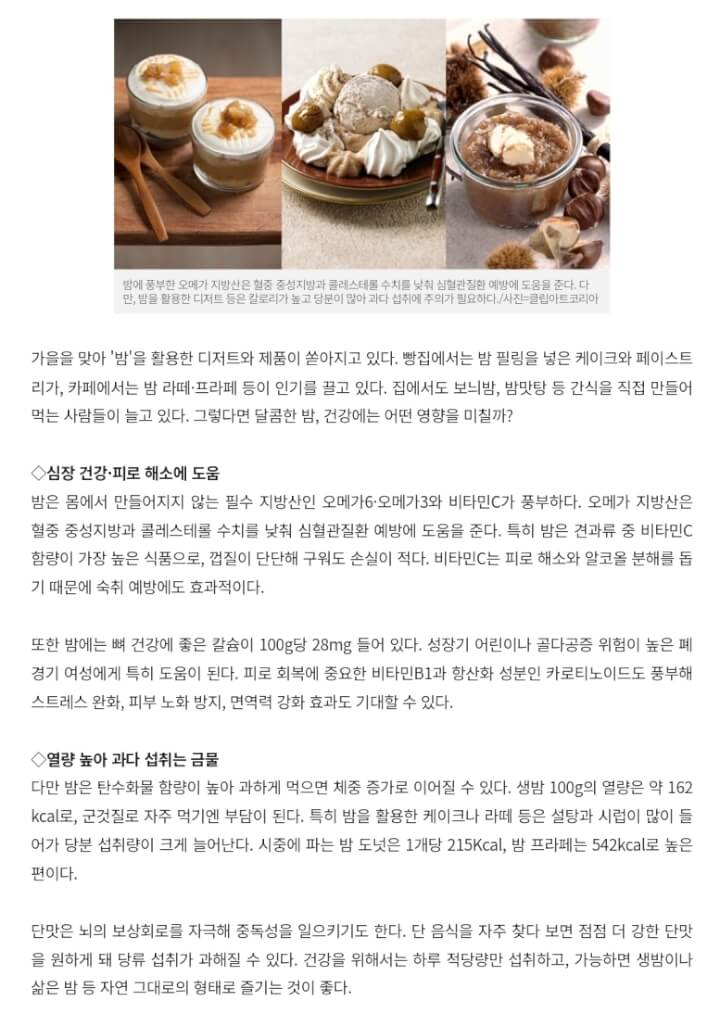 - 달콤한 ‘밤’ 디저트 유행인데… 심장 건강에 좋다고?