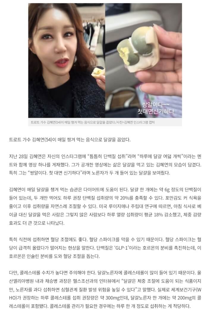 - 54세 김혜연, 나잇살 없는 비결? “매일 ‘이것’ 8개씩… 식욕 조절에 도움”