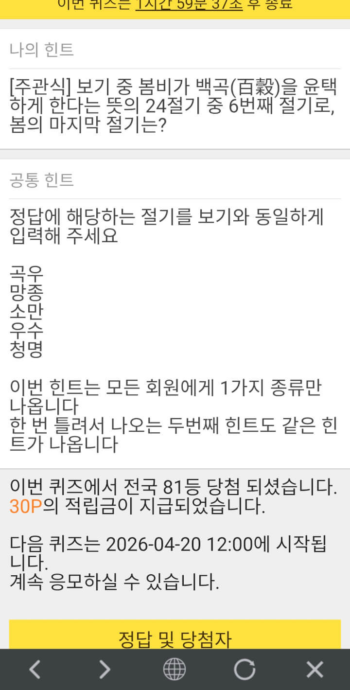 오랜만에 7시 퀴즈 30점 받았어요. 12시 퀴즈 화이팅 하세요 ~~