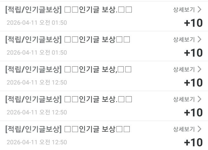 인기글 보상 감사합니다 ^^ 오늘 하루도 고생하셨습니다