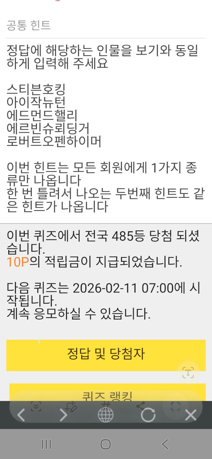 10시퀴즈 10원 받아 인사드립니다 울푸시님들 오늘하루도 수고많으셨어요 댓글 함께해 주셔서 감사합니다