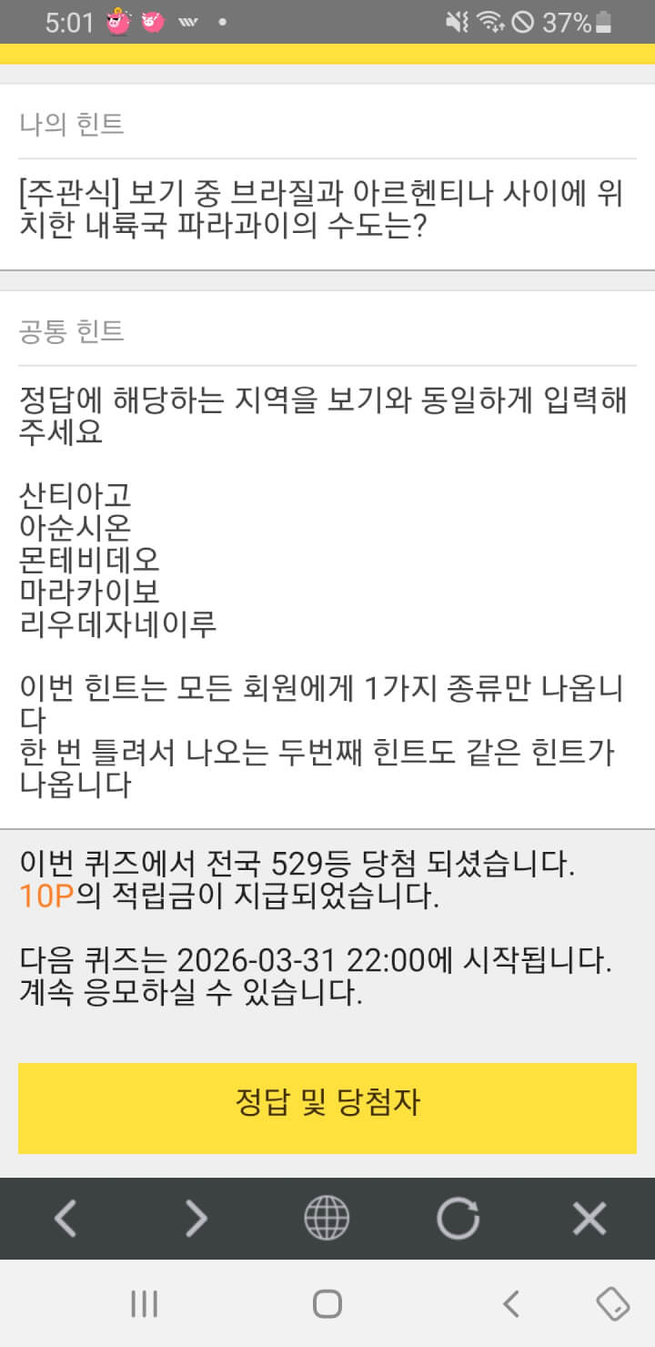 5시 퀴즈10점 받았어요.