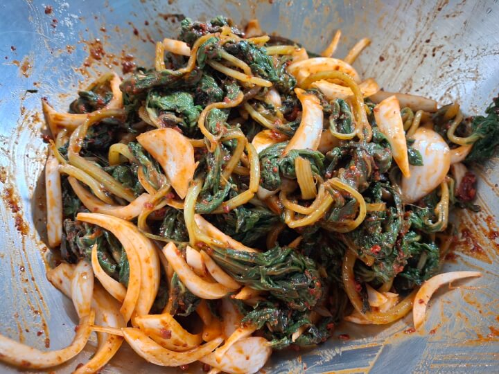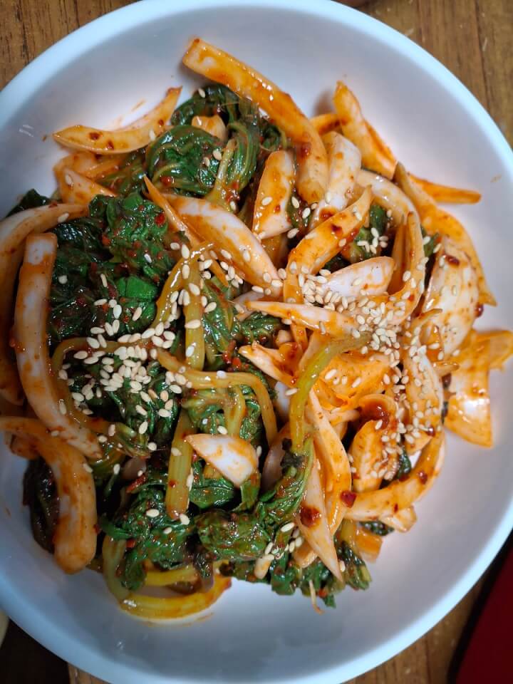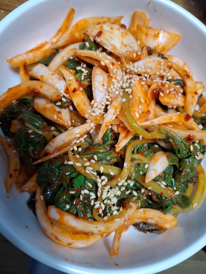 딸이랑 같이 머위 줄기 껍질 베겨 데쳐서 찬물에 담가 두었다 새콤 달콤하게 무쳐 봤어요 딸램이 먹어보더니 맛있다고 하네요