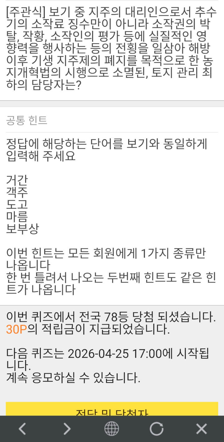12시 퀴즈 30점 받았어요. 5시 퀴즈 화이팅 하세요 ~~