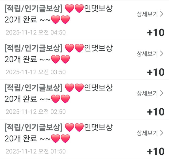 인기글보상 5개 완료했어요. 푸시님들께 감사드립니다 ~~
