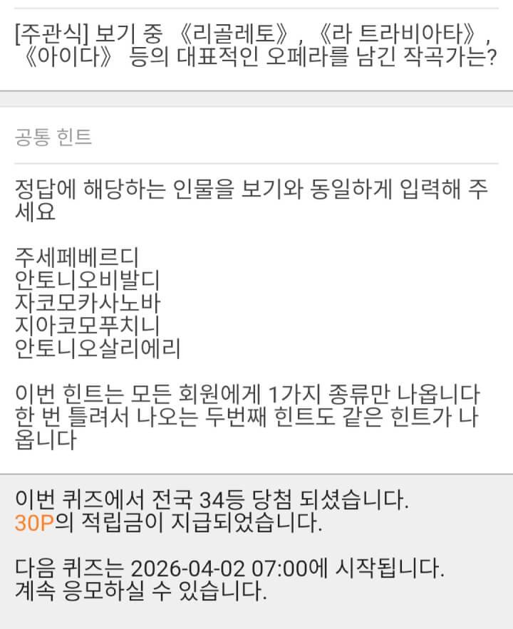 - 10시퀴즈 30원