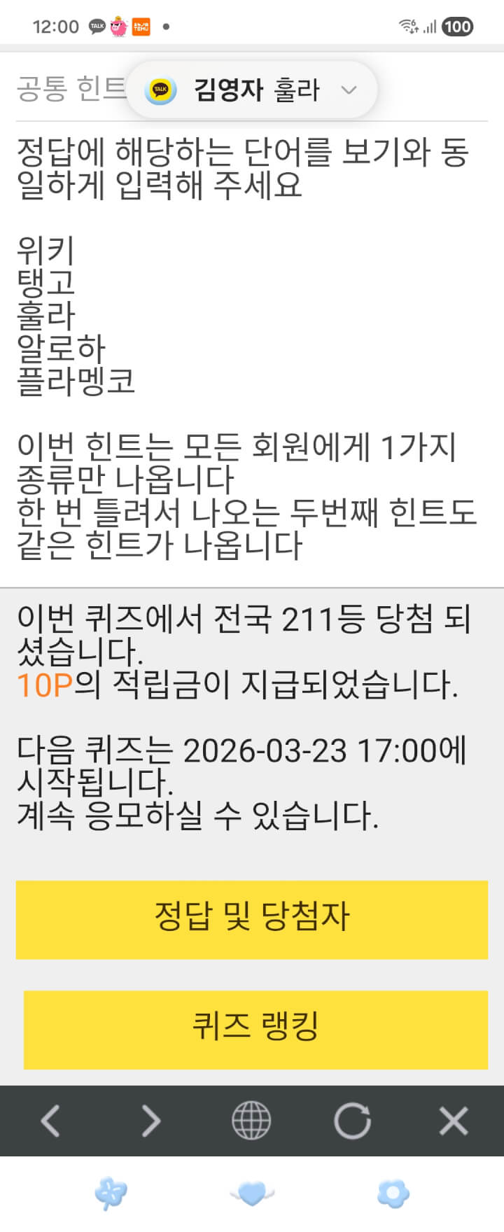12시퀴즈 10원과 반복숫자놀이 담아 저녁먹고 푸시글 올립니다 🌸💞🌷🌹💕