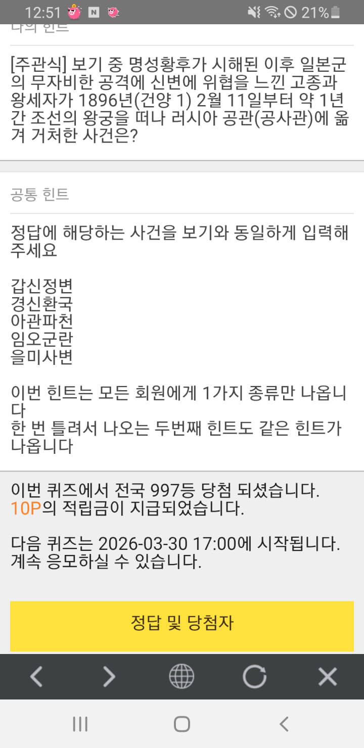 12시 퀴즈10점 받았어요. 저녁식사 맛있게 드세요.
