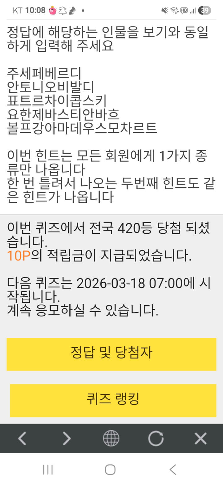 10시퀴즈 10원 받아 올려봅니다 울푸시님들 오늘하루도 수고많으셨어요 댓글 함께해 주시고 제글 읽어주시고 찾아주셔서 고맙습니다 편한밤되세요