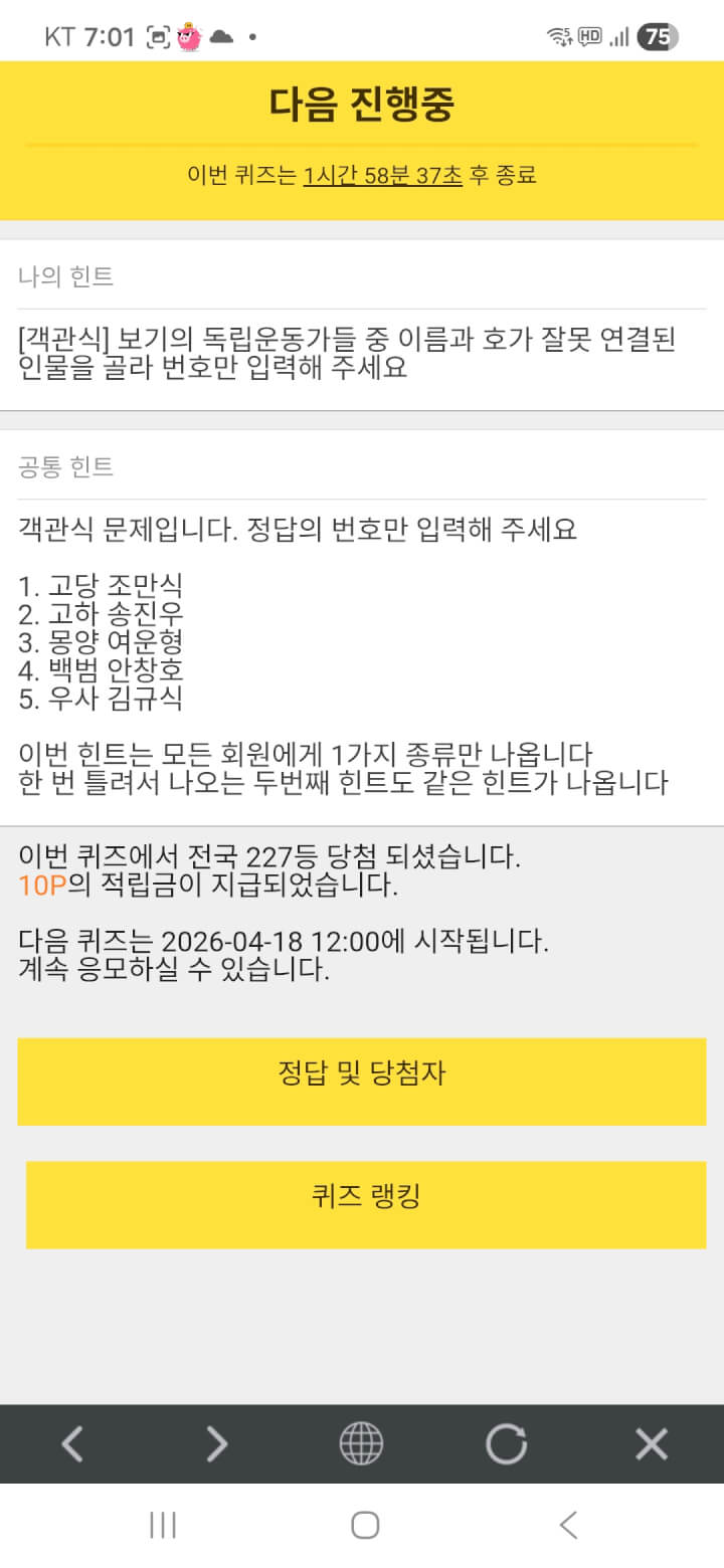 퀴즈 10원 받았어요