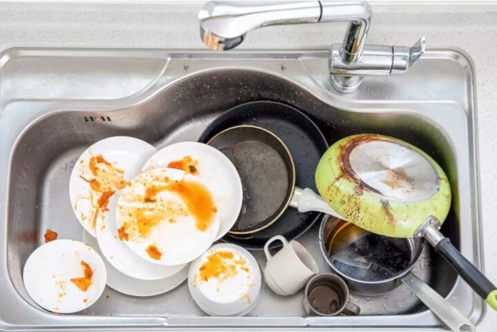 설거지를 미루고 식기를 따뜻한 물에 담가두면 세균이 빠르게 번식할 수 있다.
