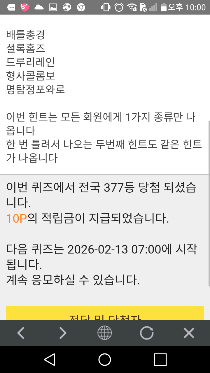 10시 퀴즈10점 받았어요 ♥♥