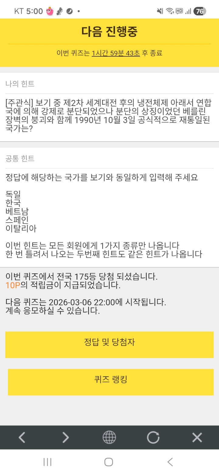 퀴즈 10원 받았어요
