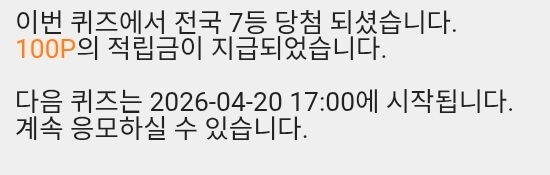 12시퀴즈 💯 원 받았습니데이