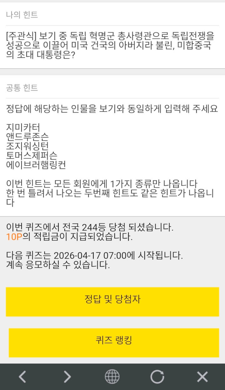 10시퀴즈 10원 받았습니다