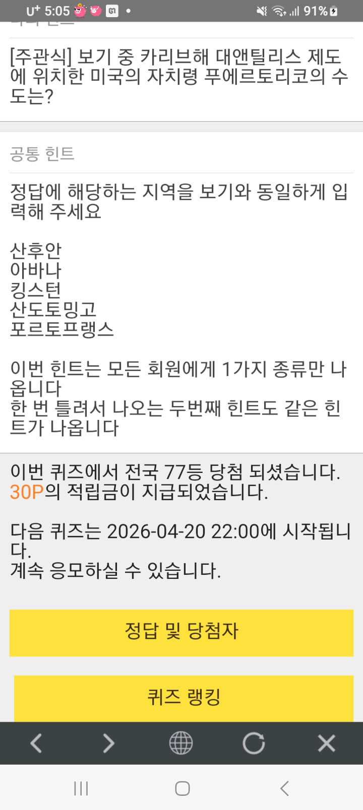 퀴즈 30원 받았어요 감사합니다 활기찬 아침 되세요