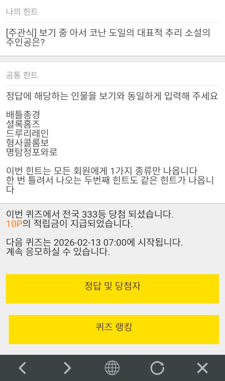 10시퀴즈 10원 받았습니다
