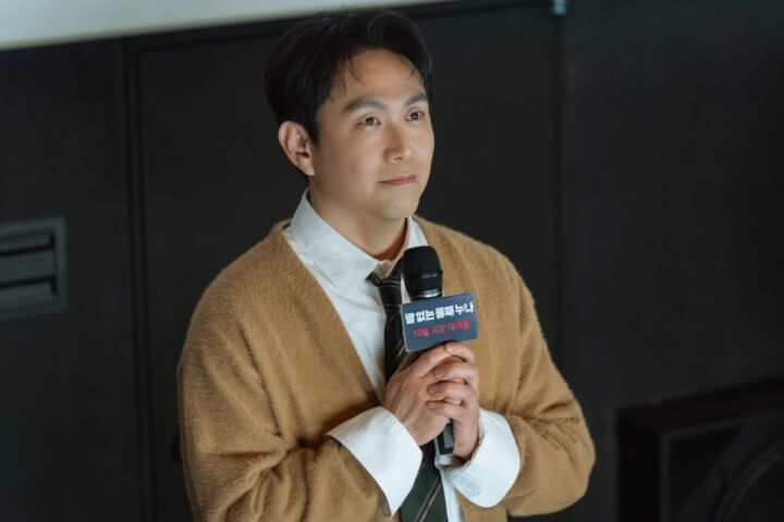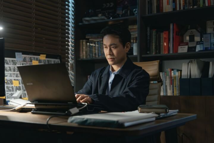 공개된 사진 속 오정세는 성공한 예술가의 여유와 위태로운 심리 상태를 동시에 보여준다. 무대인사에서 마이크를 잡은 모습은 영락없는 스타 감독이지만, 옅은 미소 뒤에 서린 초조함은 숨기지 못한다. 또 다른 사진에서는 모니터 앞에서 분노를 쏟아내며 작업에 몰두하거나, 이를 악물고 감정을 억누르는 모습이 담겼다. 이는 자신이 결코 동만과 같은 ‘무가치한 부류’가 아님을 증명하려는 처절한 몸부림으로 읽히며 묘한 긴장감을 자아낸다.