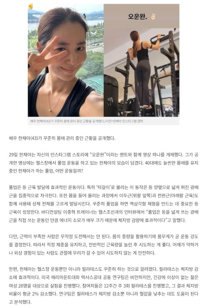 - 마른 이유 있었네” 한채아, 헬스장서 ‘이 운동’ 인증… 뭐였을까?