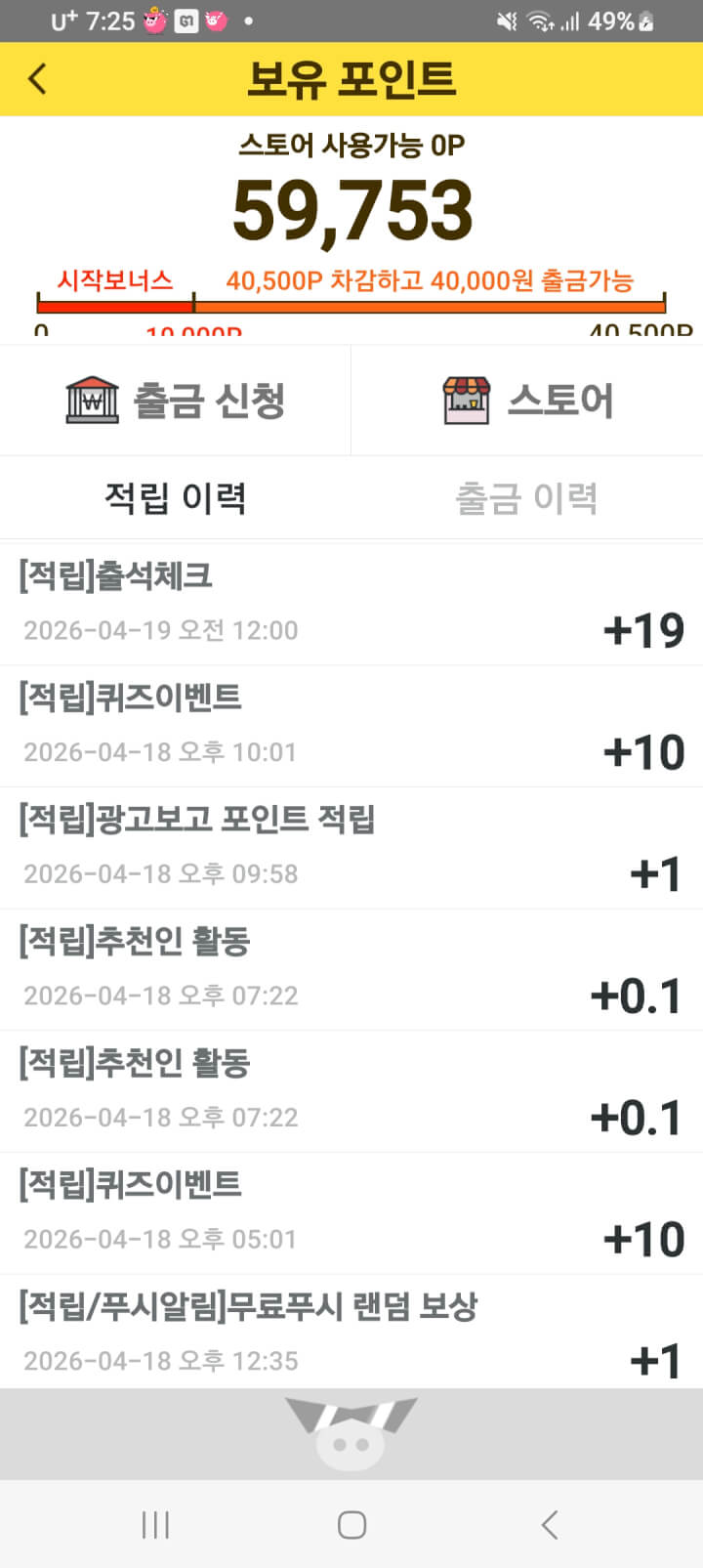 두자리 출첵 19원 받았어요 두자리 출첵 받는날은 해피 하네요 감사합니다