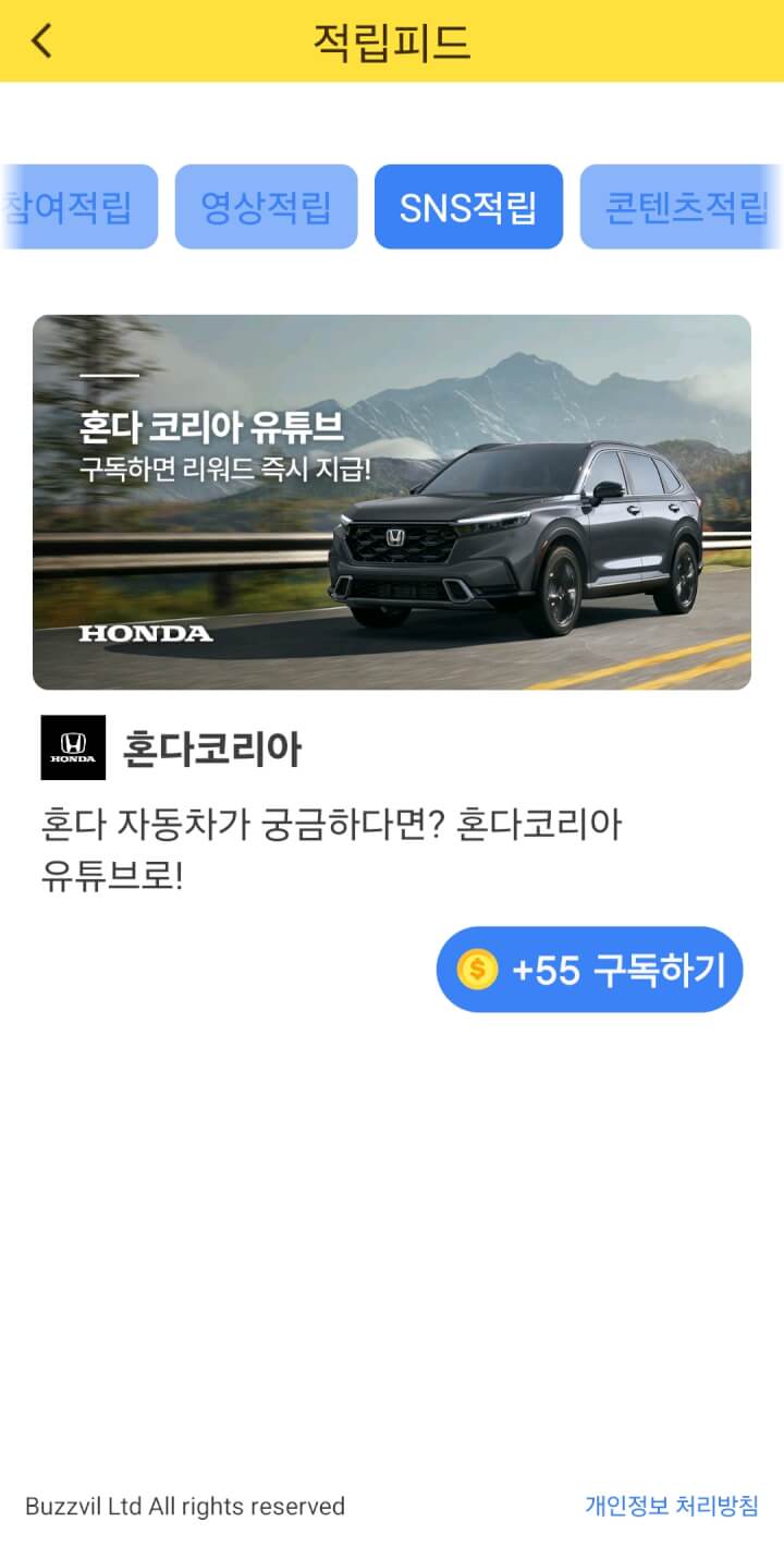 적립피드에 혼다코리아 구독하기 55점 적립 있어요 ~~