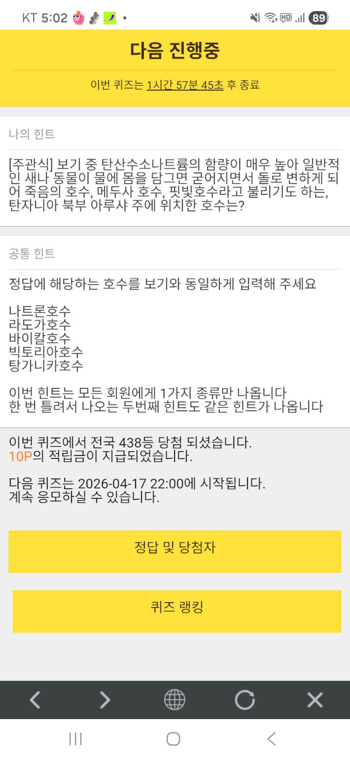 퀴즈 10원 받았어요