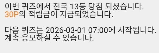 10시퀴즈 30원 받았습니데이