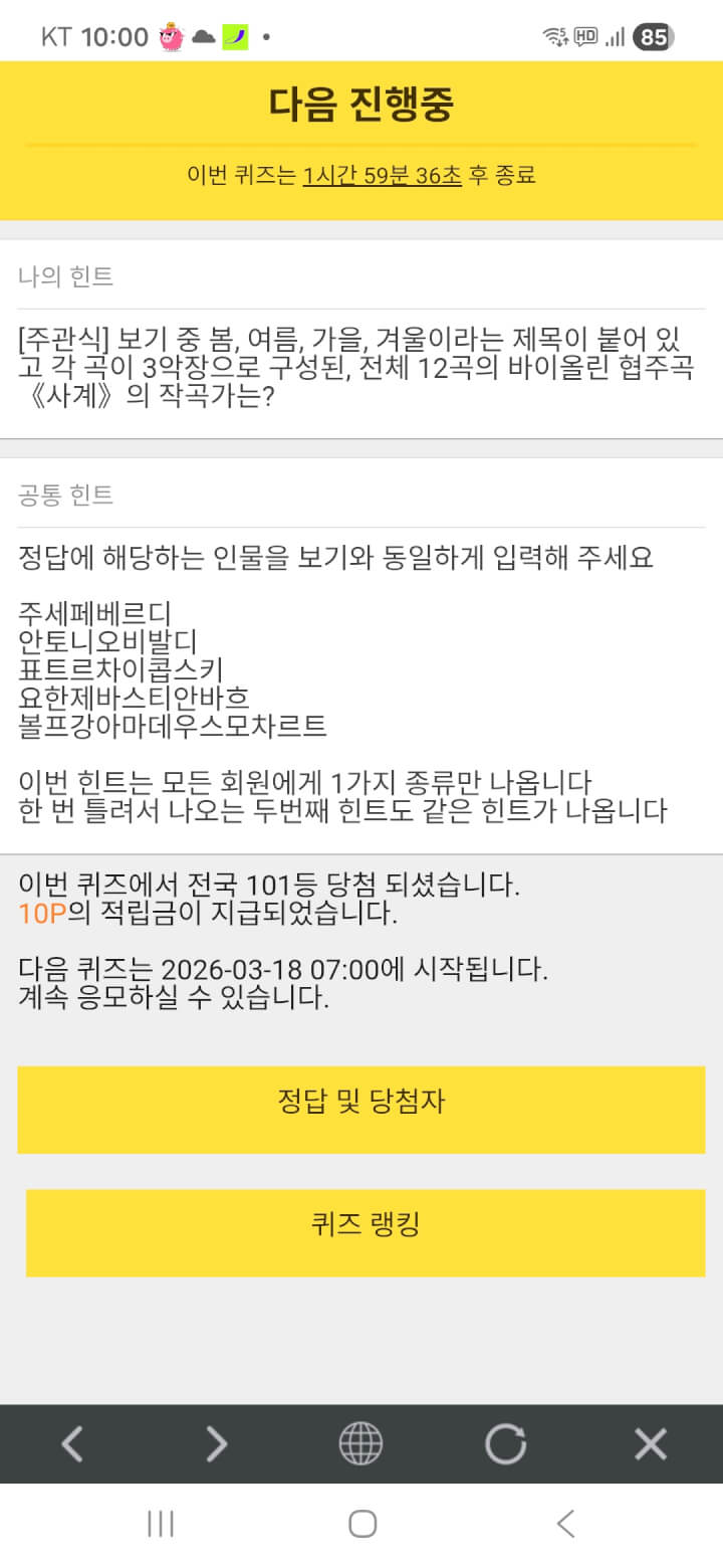 퀴즈 10원 받았어요