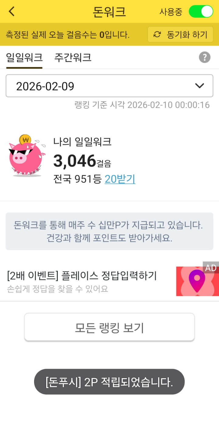 돈워크 적립 20점 받았어요. 즐거운 하루 되세요 ~~.