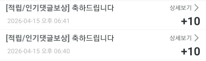 인기글 보상 +인댓 보상 완료!했어요 감사합니다
