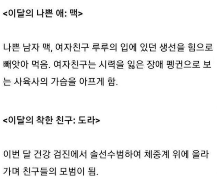 - 호주 아쿠아리움의 이달의 나쁜 펭귄과 착한 펭귄