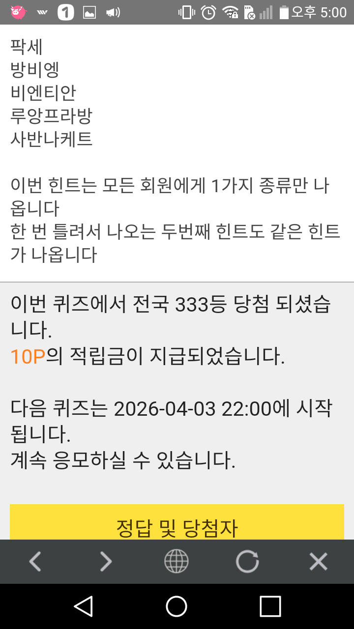 5시 퀴즈10점 받았어요 ♥♥