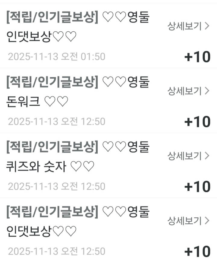 어제받은 인기글보상 5개 님들 덕분입니다 감사합니다 ☘️