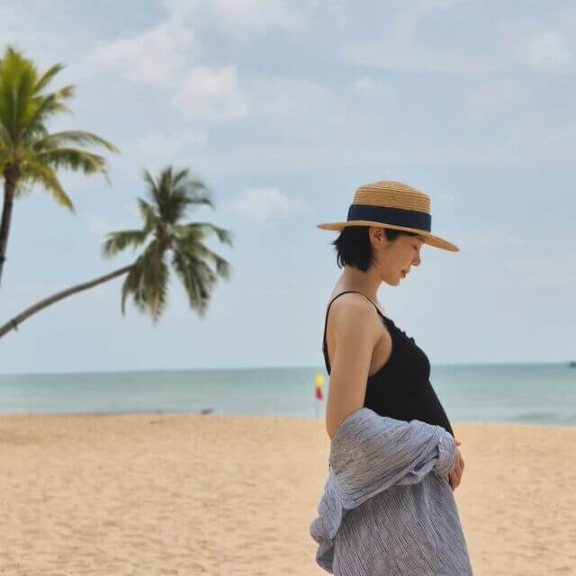 공개된 사진에는 야자수와 푸른 하늘, 바다가 어우러진 휴양지에서 볼록하게 나온 배를 쓰다듬고 있는 이문정의 모습이 담겼다. 편안한 분위기 속에서 임신한 근황을 전해 눈길을 끌었다.