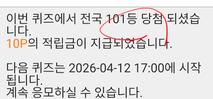 12시 퀴즈 10p와 떨어진 숫자 모음 같이 올립니다. 맛점 하시구 좋은 오후 시간 되셔요.