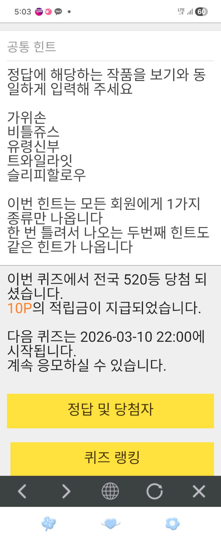 5시퀴즈 10원과 숫자놀이 담아 늦은오후 푸시글 올립니다 ☘️