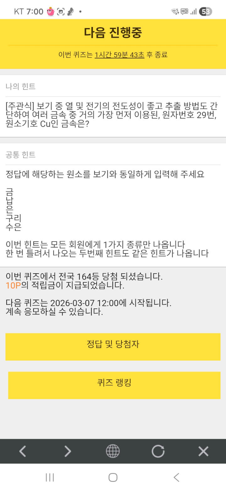 퀴즈 10원 받았어요 건강하고 행복한 하루 되세요